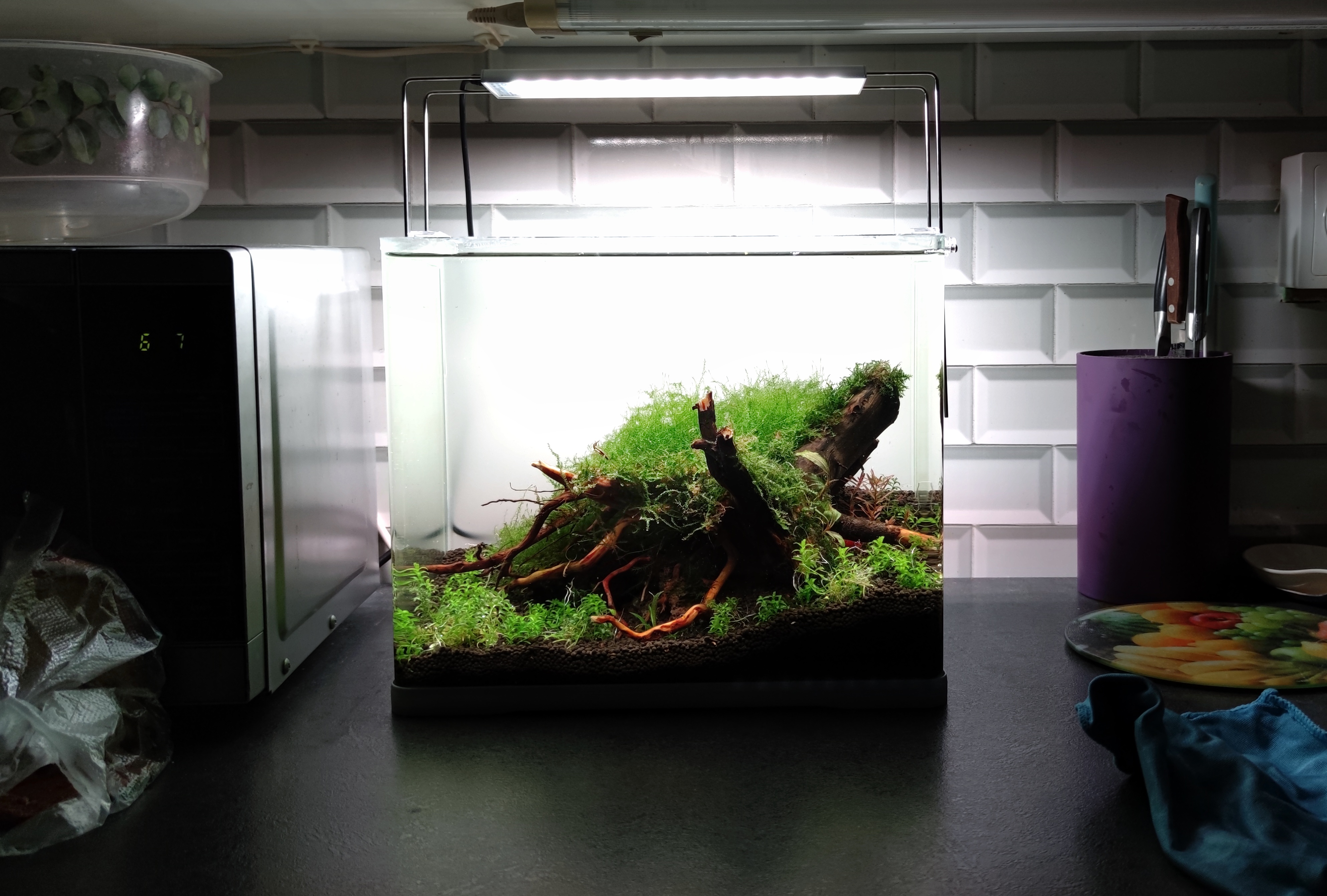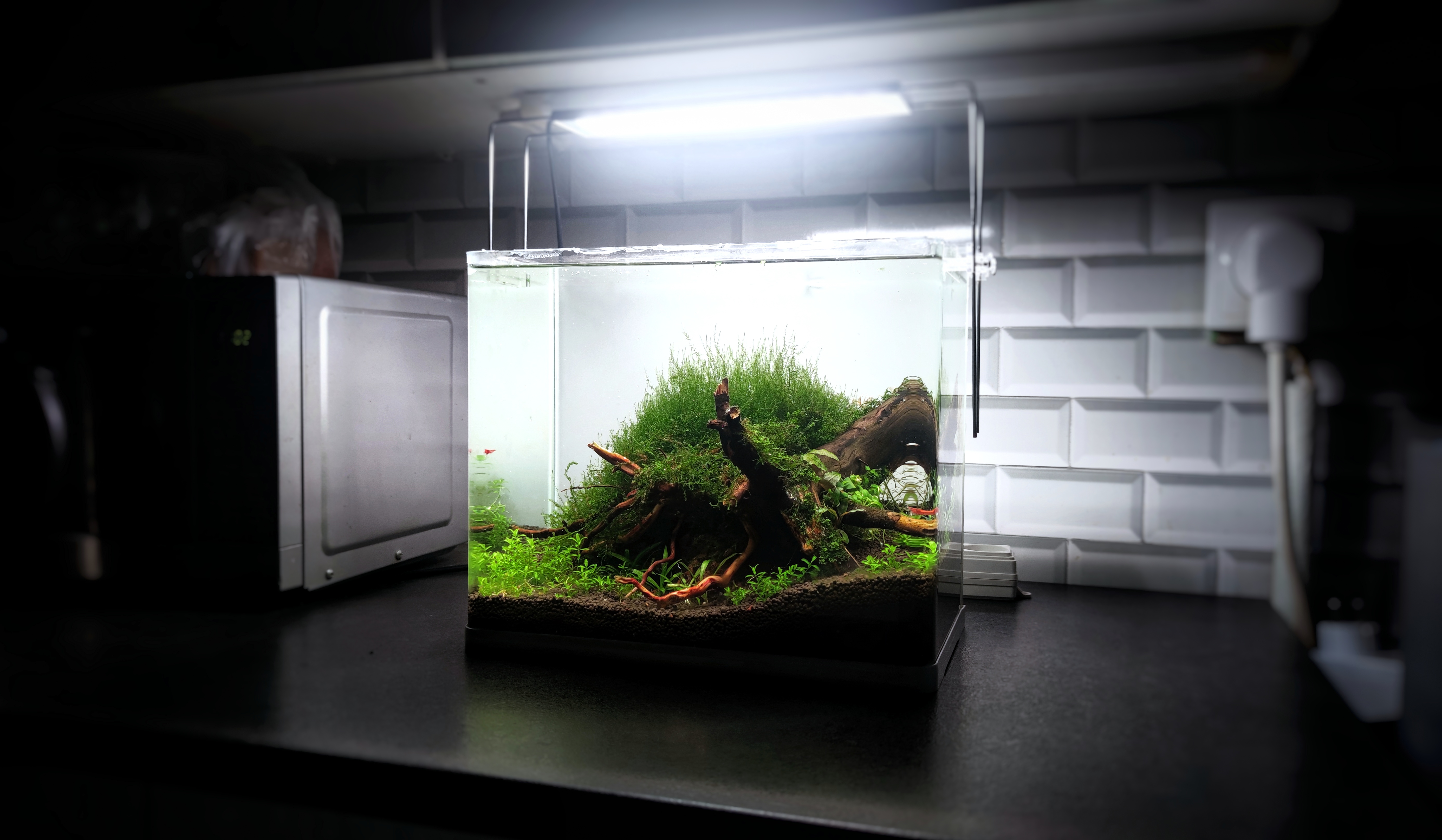 Weekly 90% water change, daily fertilizer dosages, plant trimming once every two weeks