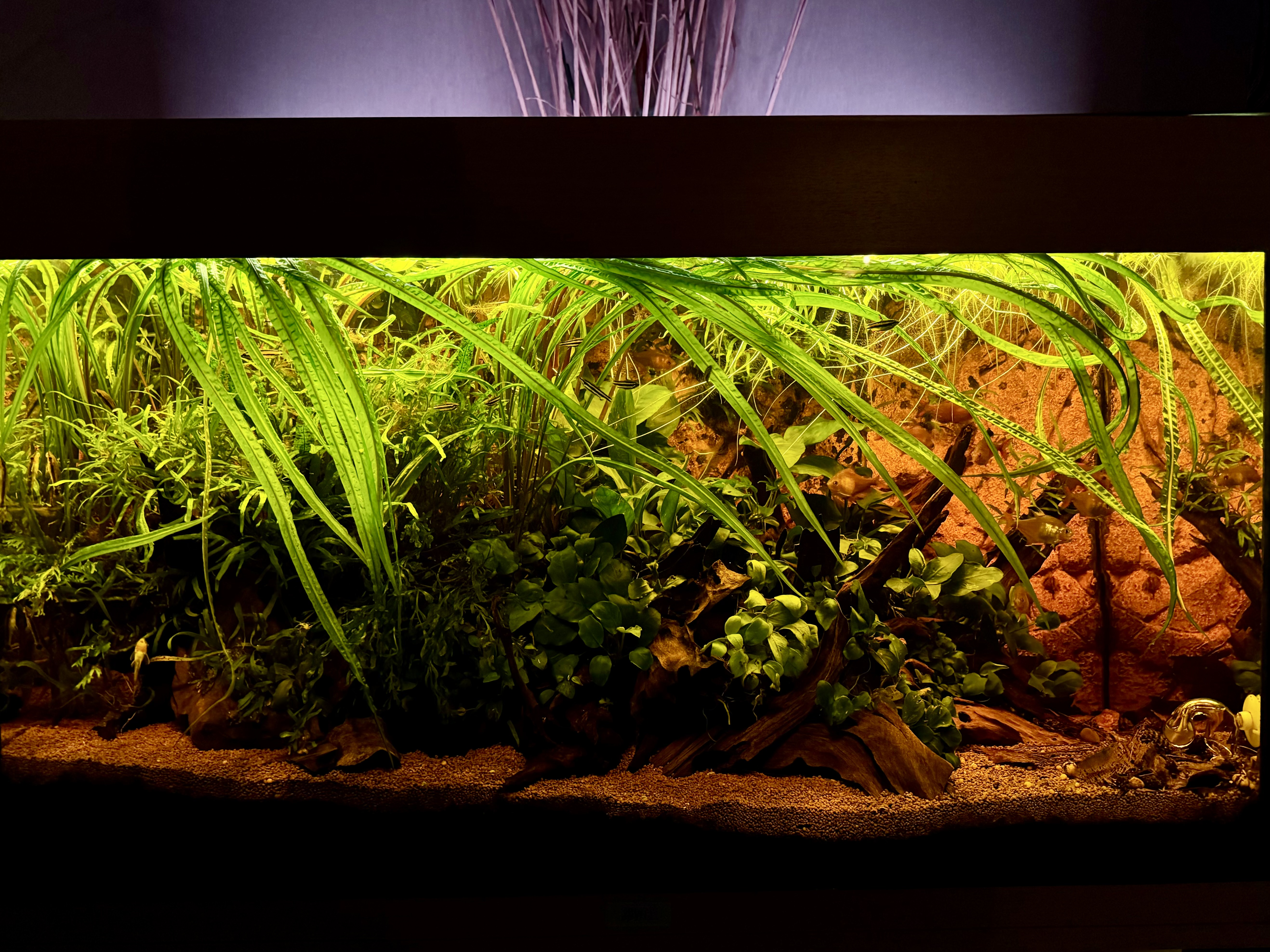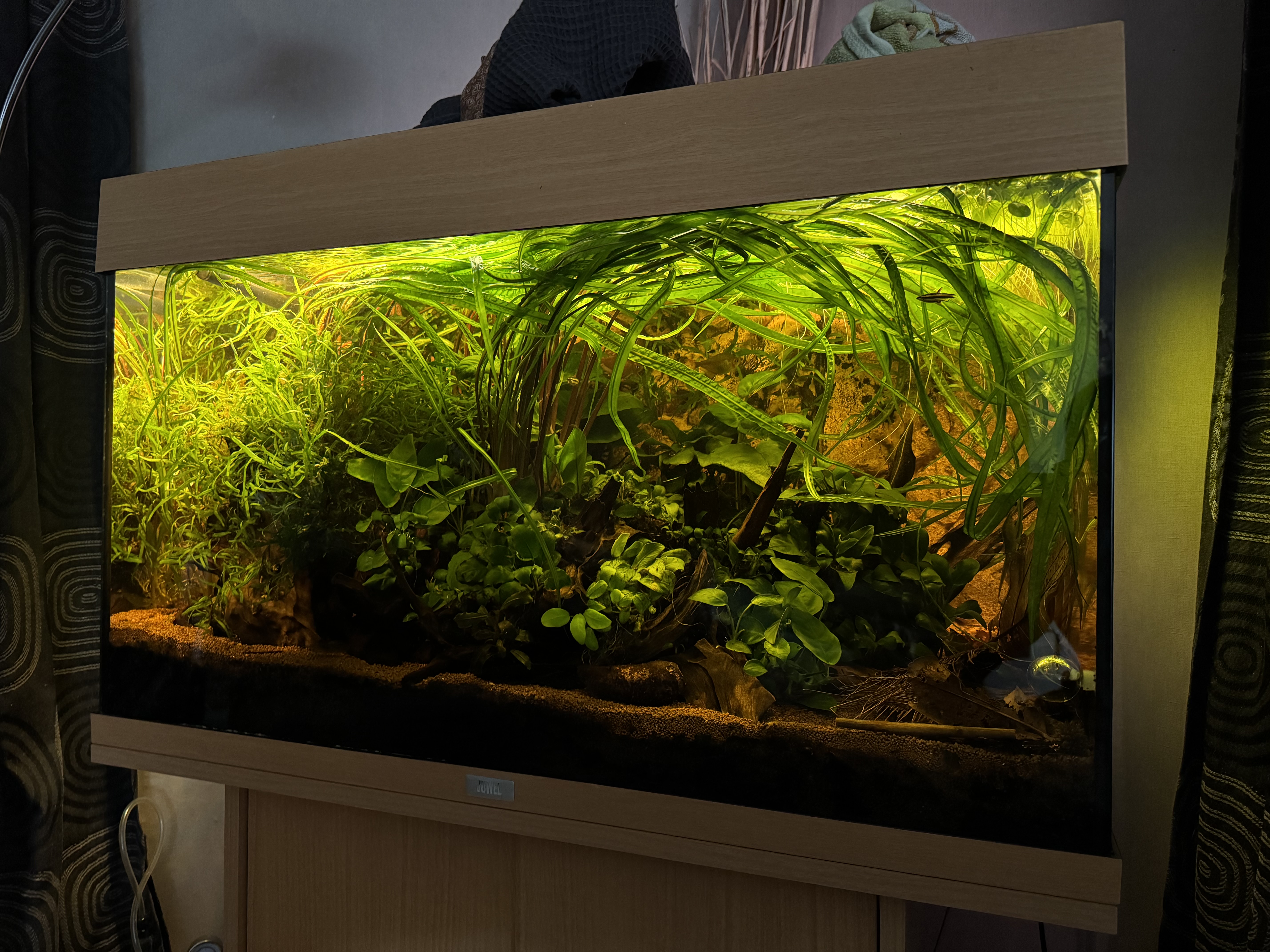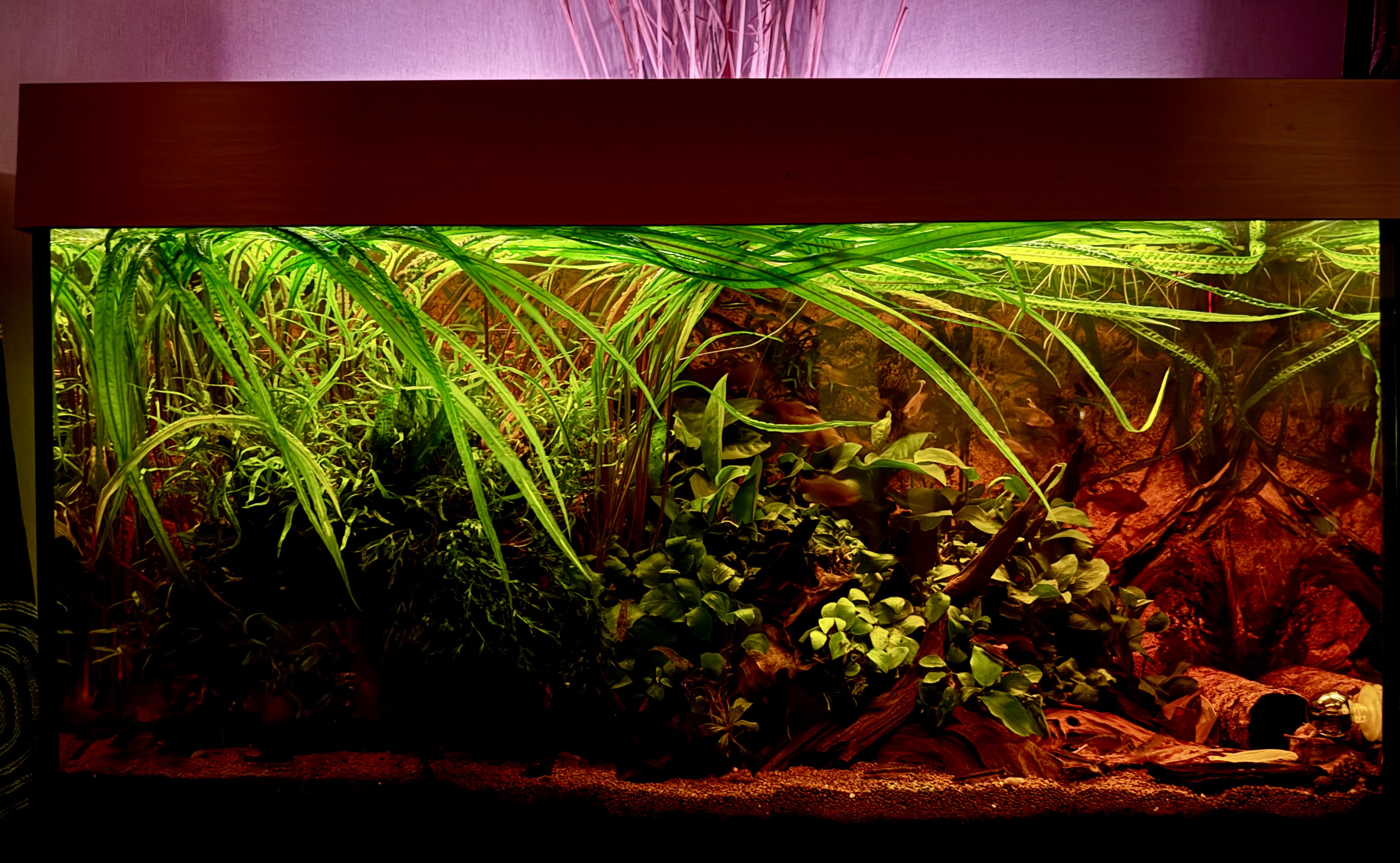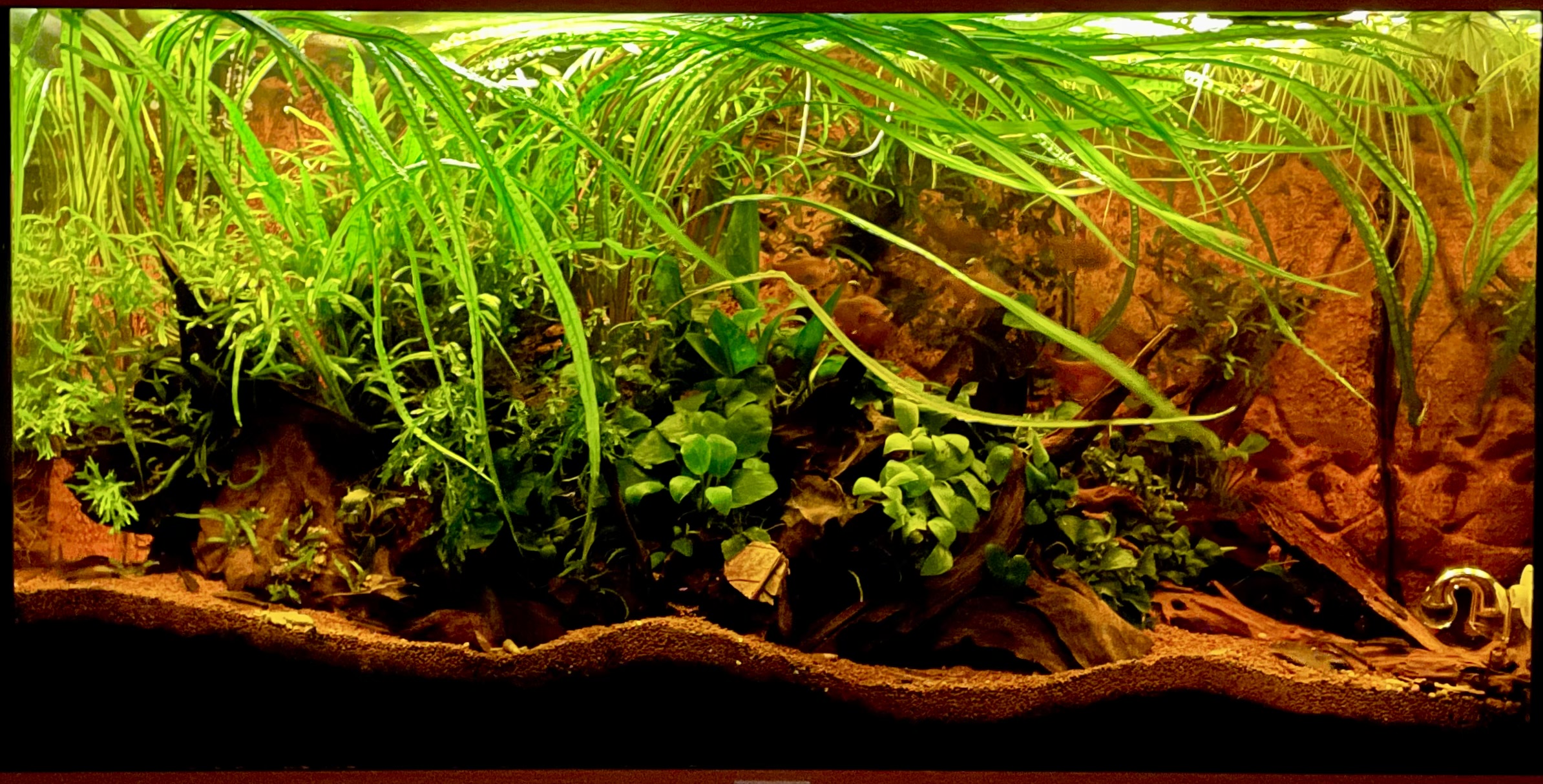 Low energy, rainwater only, tank with lots of botanicals and leaves.