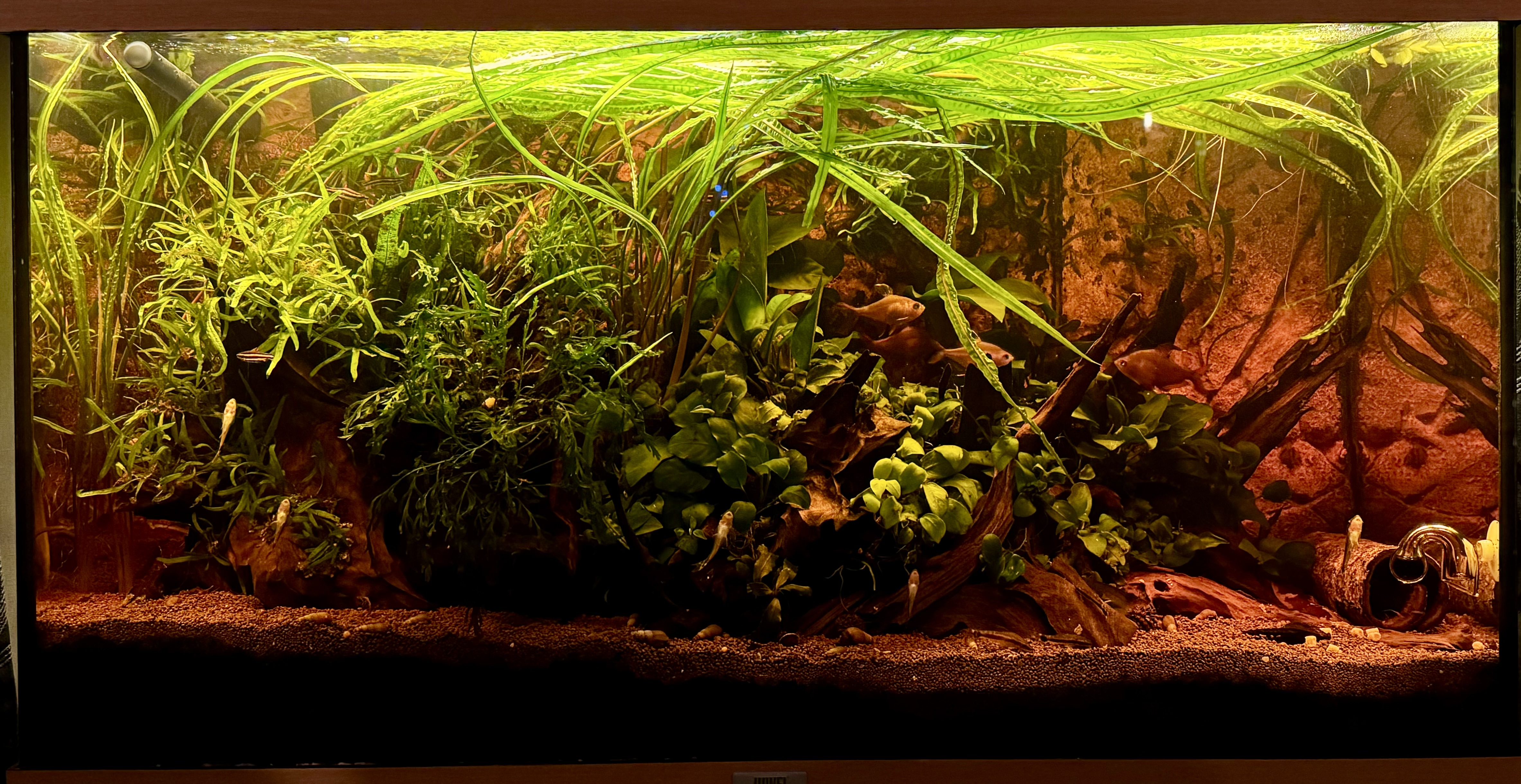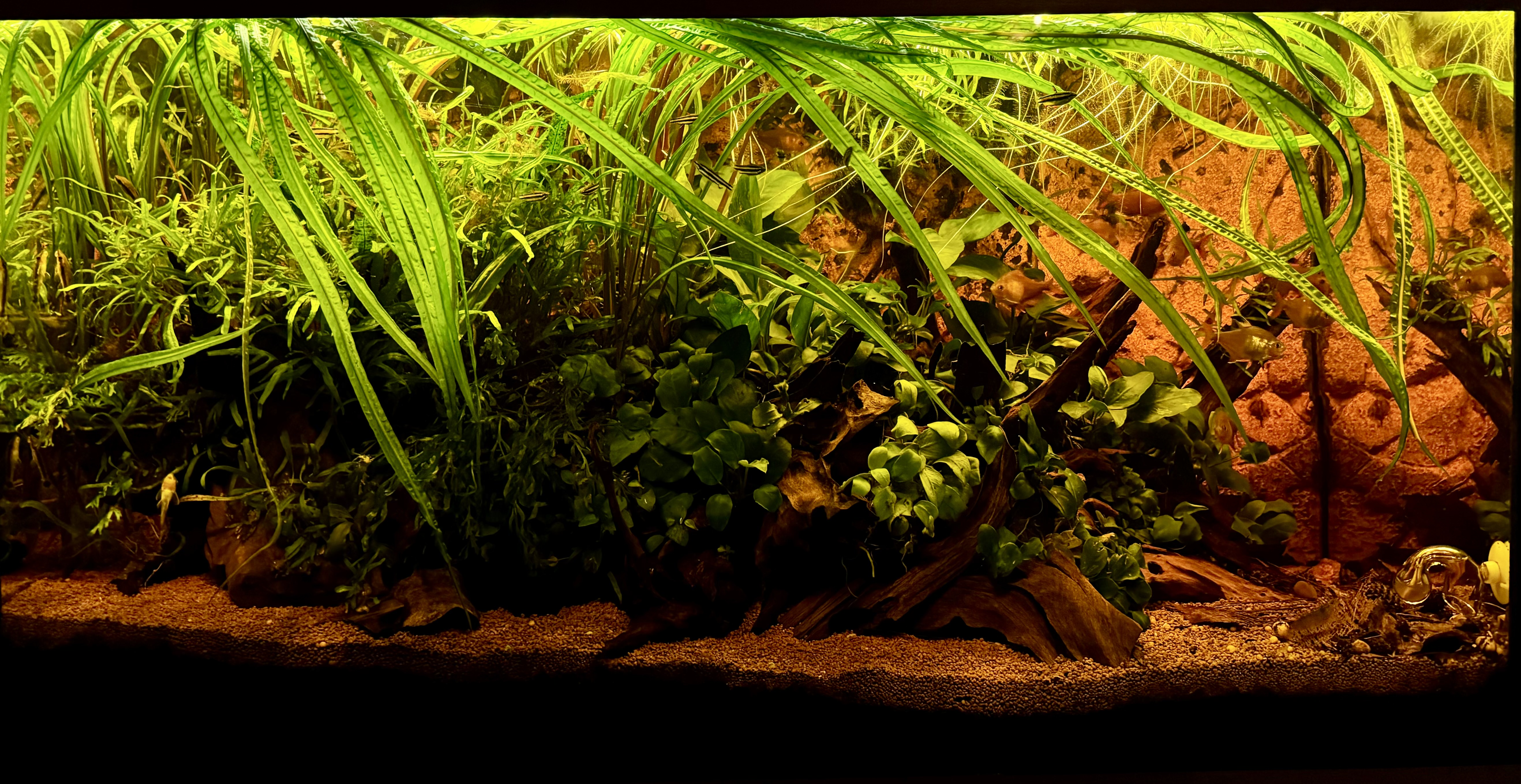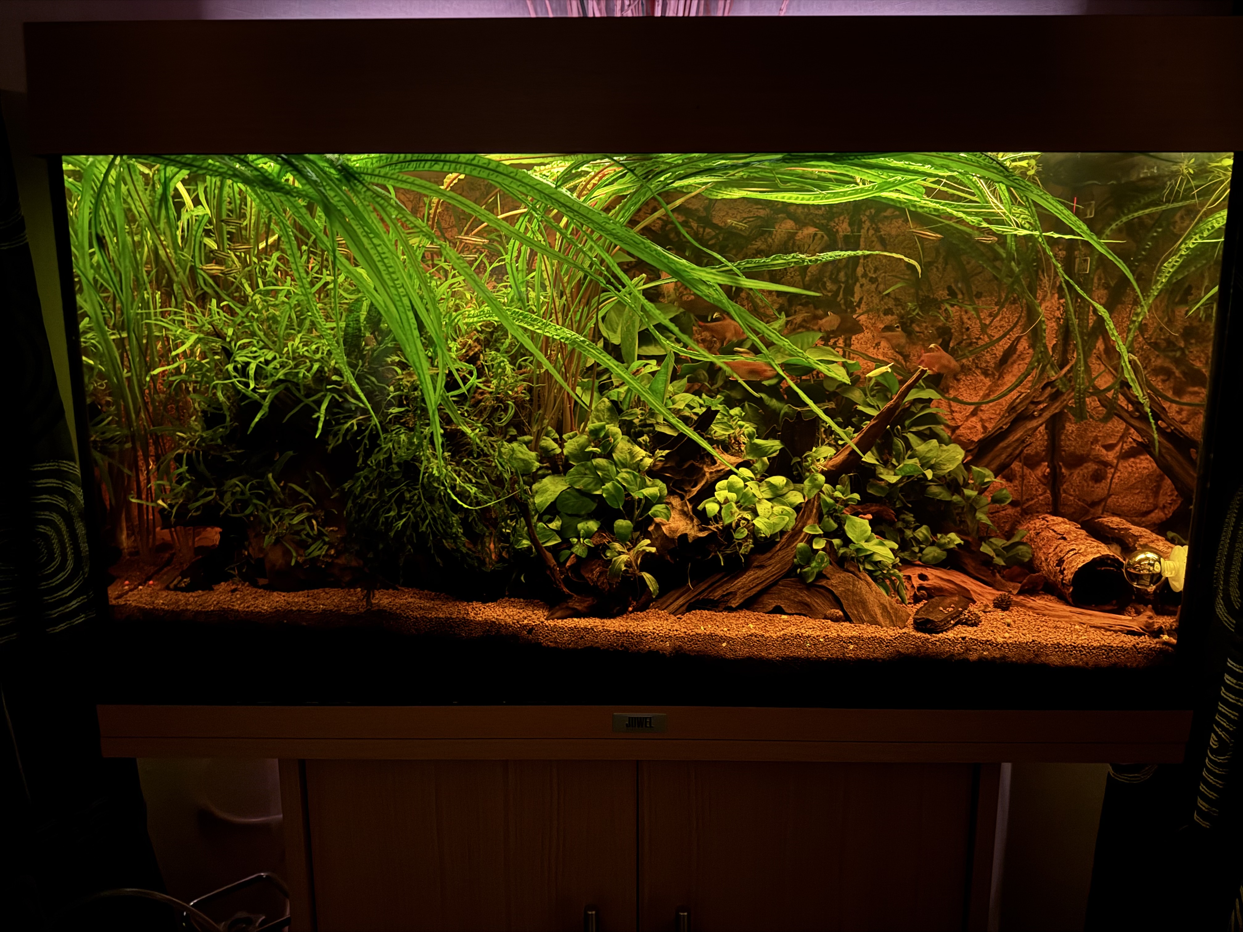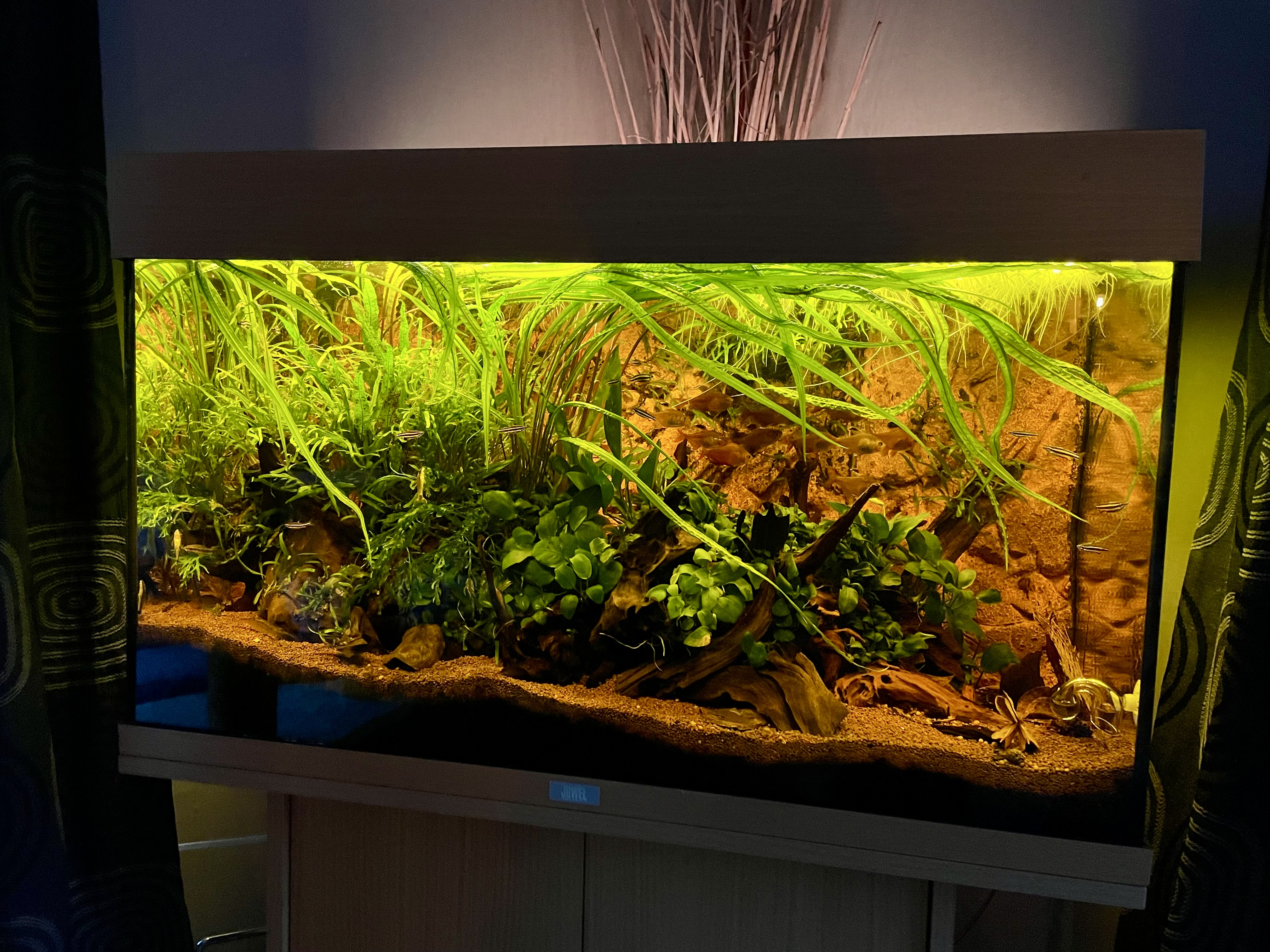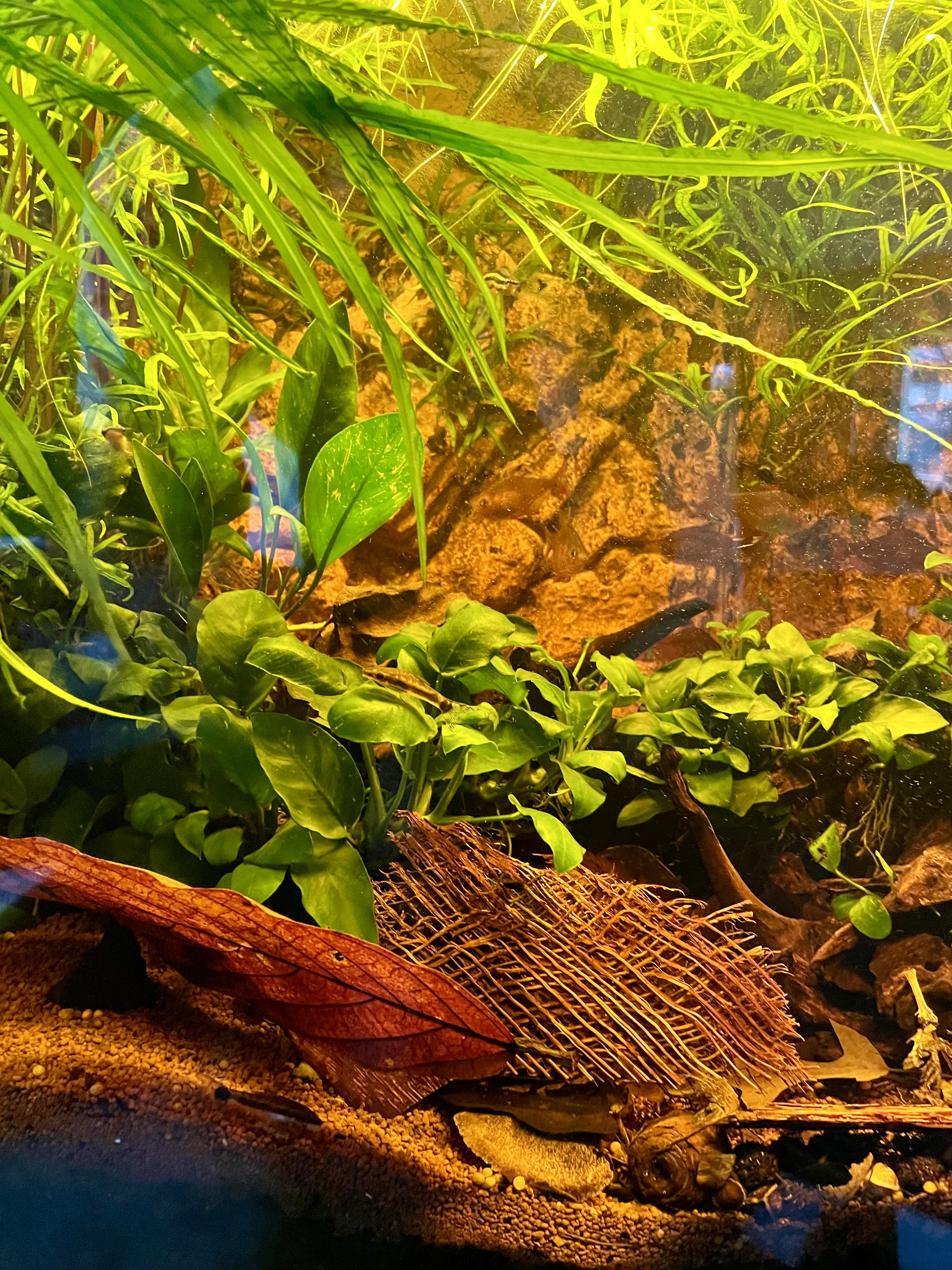 Low energy, rainwater only, tank with lots of botanicals and leaves.
